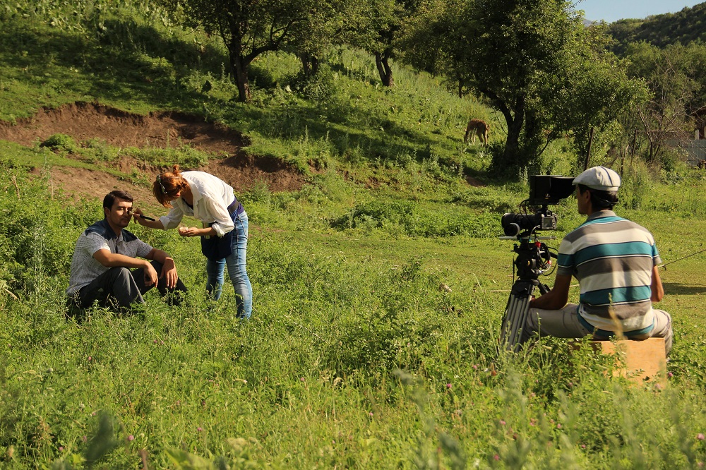 Слева направо: Ляйля Дауренбекова - редактор, Берик Орынбаев - осветитель, Азамат Ашимов - директор съемочной площадки, Марат Куандыков - техник на плэйбэке, Айжан Момбаева - второй режиссер, Есен - второй оператор